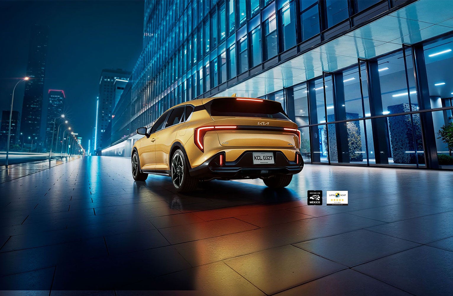 Iluminación precisa y estilo inconfundible. Los faros cúbicos de proyección LED realzan la postura amplia de K4 Hatchback, mientras los elementos de luz diurna añaden distinción.